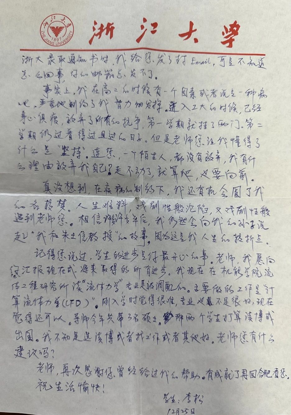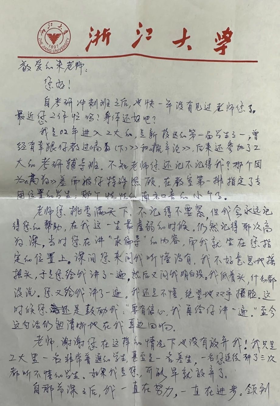 In Zhu Shixin's desk, has been treasured a letter. This is a letter that Li Song, the first student of the Jade Campus of the United University of Technology, wrote to him more than 20 years ago after he was admitted to Zhejiang University as a graduate student. In this letter of nearly a thousand words, Li Song fondly recalled Zhu Shixin's care and guidance to him during his undergraduate years. In one class, Li Song did not understand the content of "finding partial derivatives". Zhu Shixin used the break time to explain it three times in a row. Looking at Li Song still confused, Zhu Shixin let Li Song sit in the first row of seats in every class, so that he could grasp his learning situation in time. All this gave Li Song a great encouragement. Since then, he worked hard and was admitted to Zhejiang University as a graduate student with his excellent results.
