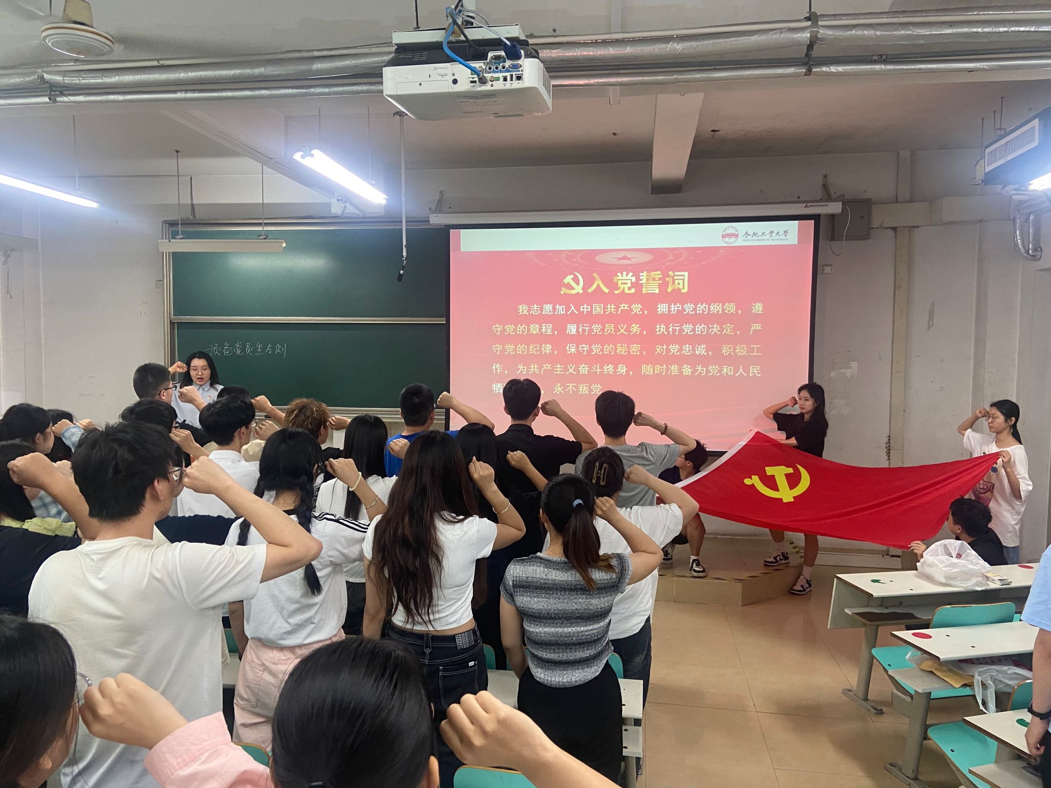 在中国共产党成立103周年到来之际,2024年6月24日下午,B体育手机官方网站入口在翠7教101教室组织开展迎“七一”主题党日活动暨2023-2024学年新发展党员宣誓仪式。本次活动由学院党委书记范仁庆主持,9个师生党支部全体党员参加。