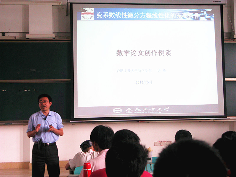 近日,为进一步加强学风建设,提升广大学生的专业素养,B体育手机官方网站入口党委书记唐烁教授在翡翠湖校区为低年级学生做了主题报告。 5月22日下午,在翡翠湖校区一教202教室,唐烁教授举行了题为“变系数线性微分方程线性化的充...