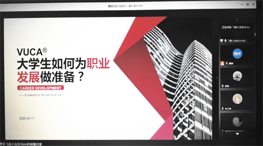 6月17日晚,B体育手机官方网站入口“校企面对面”就业指导报告会在腾讯会议平台成功举行,学院近300名学生参加了本场报告会,Yeahmobi易点天下网络科技有限公司的学习发展高级专家詹慧鹏应邀为同学们做了题为“VUCA时代,大学生如何为职业发展做准备?”的就业指导报告。