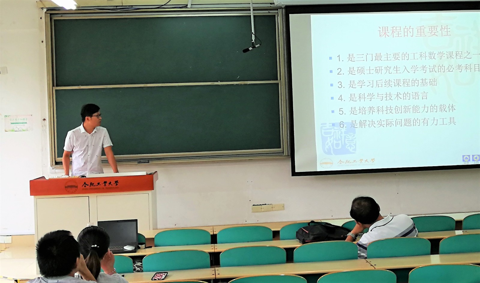 参加试讲的四位青年教师江慧、罗肖、李东伟和汪永杰分别从《工科数学分析》、《高等数学》、《线性代数》3门课程中选取了内容进行了20分钟的试讲. 试讲的四位青年教师讲课整体较好,备课充分,教学内容充实,重难点突出,知识点讲解清楚,基础概念明确,仪态端正,语言清晰流畅。参加听课的老师们在认真听取试讲后,分别对四位青年教师的备课情况、教学内容、教学方法、讲课节奏、肢体语言以及对课堂的掌控等方面做出点评,帮助新教师们找出授课中的不足,并针对每个老师的情况对涉及的相关课程重点难点、课程特点、课件设计、教学方法和教学手段及其处理方法,结合自己多年的教学经验提出了宝贵的意见和中肯的建议。新教师试讲后,对于即将上课的课程也提出了自己的一些困惑和关心的问题,几位老师给予了热心的解答,同时也介绍了很多自己课程教学过程中的经验。