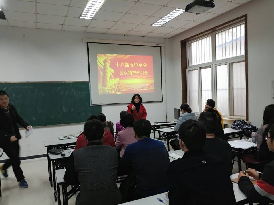 王老师首先强调了学习十八届五中全会的重要意义,全会为我国未来五年发展明确了方向,确立了大框架,制定了路线图。王老师通过PPT向大家讲解了十八届五中全会的相关内容,牢牢把握全面建成小康社会的奋斗目标,扎扎实实推进“两个率先”不仅要确保打好全面建成小康社会的决胜仗,实现“两个翻一番”的硬指标,而且还要落实为“为全国发展探路”的要求。最后并传达了学校关于学习十八届五中全会精神的具体要求。同学们对学习十八届五中全会精神谈了自己的看法和心得,并纷纷表示学习十八届五中全会精神受益良多。