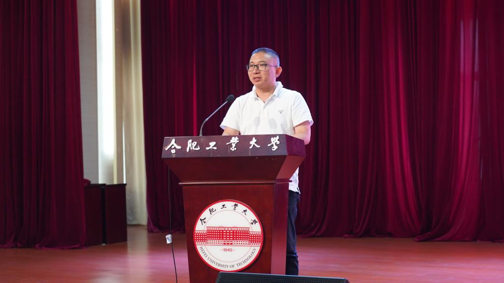 会议伊始,全体起立,奏唱国歌。在典礼上,学院院长朱士信致辞。他对同学们取得的优异成绩表示热烈祝贺,并对新加入数院大家庭的180名新成员表示热烈欢迎。同时,他结合学校概况、学院学科建设与专业发展情况、学院师资力量等,给新生们上了一堂生动有趣的大学“第一课”。他勉励新生要立大志,做规划,提技能;要学会独立地生活,健康快乐地学习;要把握数学课程体系与特点,做好时刻迎接学习困难的准备;要保持学习惯性,一踩油门,全速前进,鼓励新生积极探索,不断完善自我。