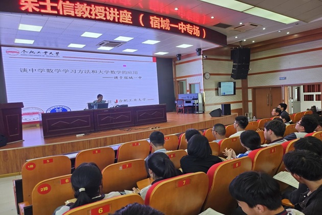 在宿城一中城南学校和宿城一中,朱士信教授分别给高三学子们带来了精彩的报告。他通过自身的求学经历勉励同学们放松心态,认真备考。他说,人才都是靠不断努力、善抓机遇而成长起来的普通人;大家是人才的好苗子,只要大家敢于梦想,勇于挑战,抓住今天,就一定能成就明天。报告会气氛轻松活跃,赢得大家的阵阵掌声。