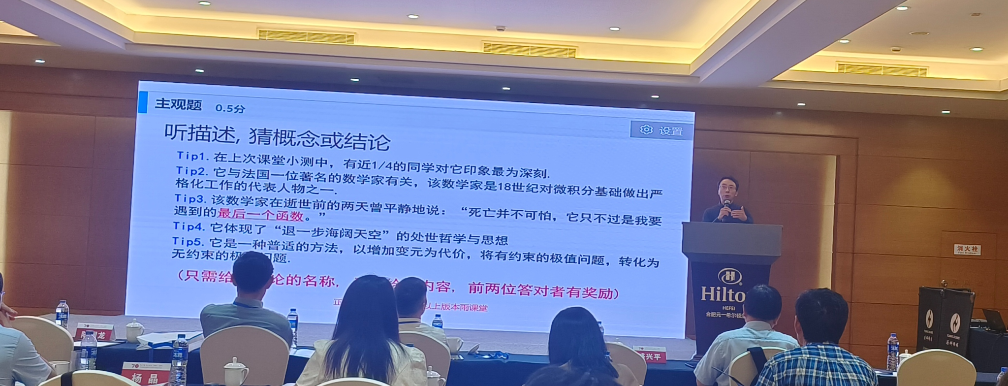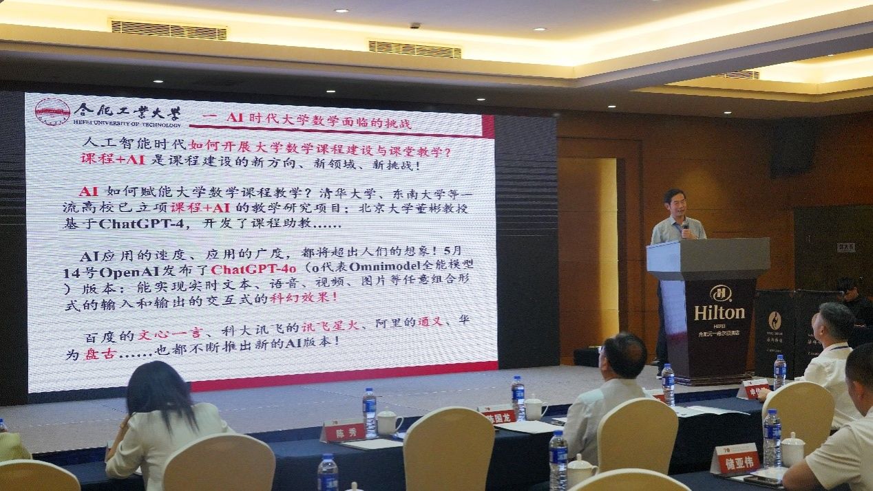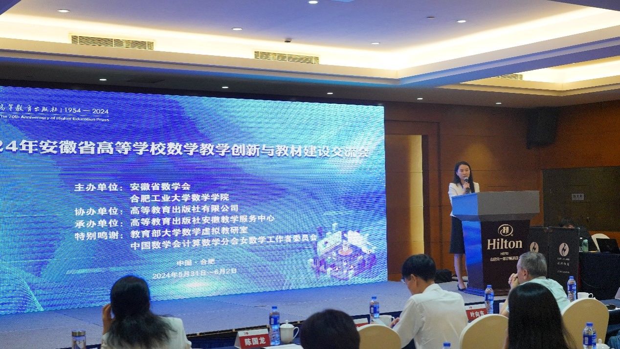 中国科学技术大学程艺教授、国防科技大学朱健民教授、西北工业大学张莹教授、合肥工业大学朱士信教授、阜阳师范大学储亚伟教授、清华大学杨晶副教授、高等教育出版社朱槿编辑分别以“一流课程建设的思考与实践”、“如何加强大学数学课程建设与虚拟教研室的深度融合”、“数智化背景下微积分课程的改革与创新”、“AI时代的大学数学教材建设的探索与实践”、“基于知识图谱的课程优化与智慧教学”、“数学基础课中融入四维式课程思政的实践与探索” 和“创新驱动 构建高质量教材体系”为题做了分享报告。