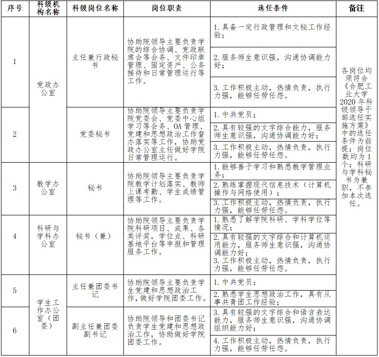 根据《合肥工业大学科级干部选拔任用工作实施办法》,结合学院实际情况,现将B体育手机官方网站入口2020年科级领导干部选任工作公告如下: