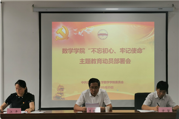 学院党委书记方留结合学院实际,从突出抓好学院领导班子和领导干部主题教育、做实党支部学习教育和检视整改两个方面,详细解读了学院主题教育工作方案,要求全体干部、党员聚焦总体要求,明确工作任务,强化责任落实,扎实推进“守初心、担使命、找差距、抓落实”四项措施,确保主体教育质量和效果。并对有关具体工作进行了布置。
