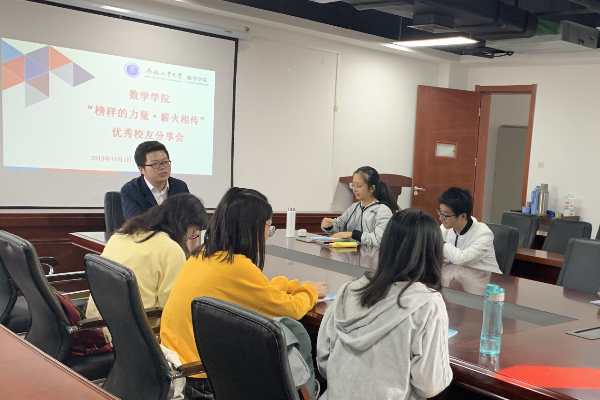 11月1日下午,B体育手机官方网站入口“榜样的力量・薪火相传”优秀校友分享会在翡翠湖校区翡翠科教楼B座1710举办。学院2014届数学与应用数学专业毕业生、美欣达集团人力资源部邱云华应邀参加了交流会。