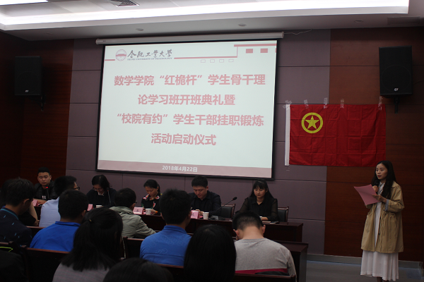 仪式在庄严的《中国共产主义青年团团歌》中开始,学院2015级、2017级辅导员房虹姣老师布置了理论学习班教学实施方案,并对学习纪律提出了相应要求;校团委刘政老师宣读了《B体育手机官方网站入口“校院有约”学生干部挂职锻炼活动细则》,并希望被推荐到校学生会挂职锻炼的学生干部们能够珍惜机会、认真学习、勤于思考、用心感悟。
