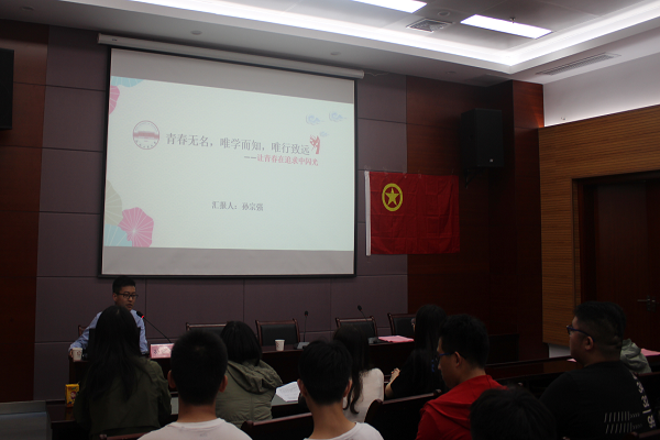 在交流互动环节,校学生会副主席孙宗强同学与学员们做了《青春无名,唯学而知,唯行致远——让青春在追求中闪光》的主题分享交流。