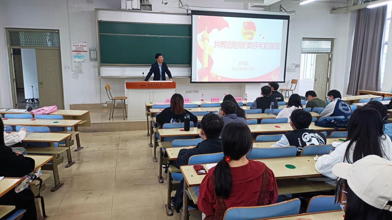 4月13日下午,B体育手机官方网站入口、外国语学院2022年度上半年团校开班典礼暨团学骨干培训班开班仪式在翡翠湖校区3教301举行。学院党委副书记兼纪委书记、辅导员及团校学员60余人参加仪式。