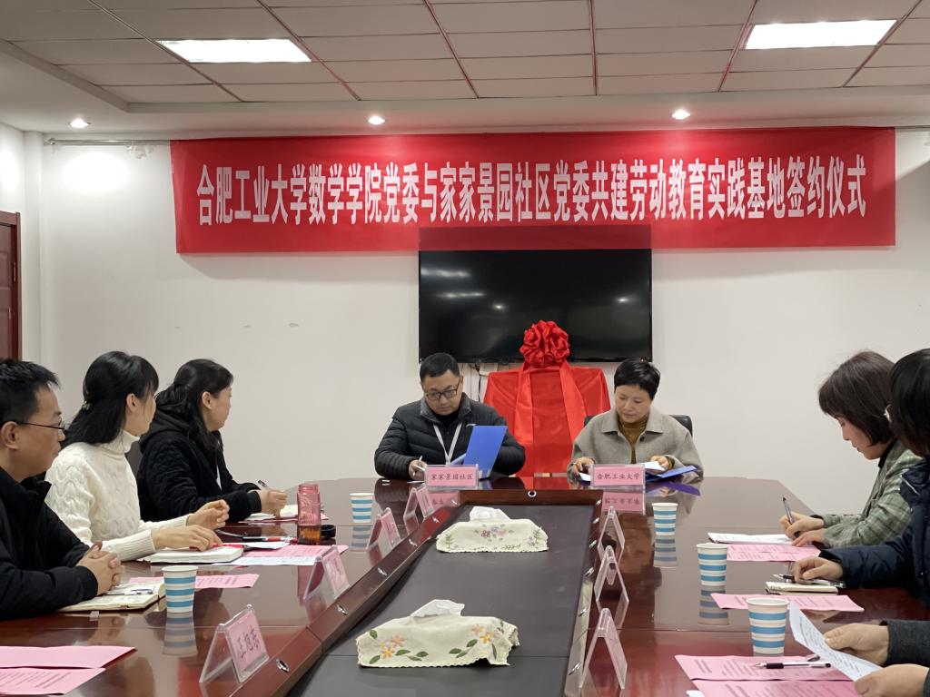 1月6日下午,B体育手机官方网站入口与蜀山区家家景园社区共建大学生劳动教育实践基地签约仪式在家家景园社区党群服务中心二楼会议室举行。蜀山区区委、五里墩街道、家家景园社区和学院党委主要负责同志参加仪式。