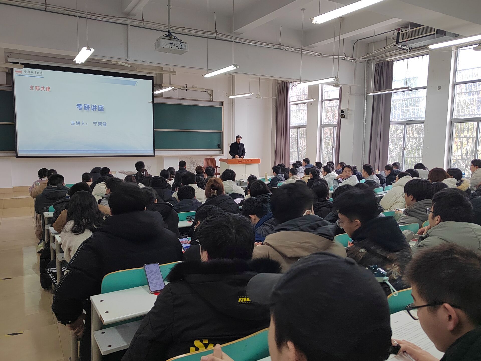 据悉,本次共建活动是B体育手机官方网站入口师生党支部共建的重要举措。本次专题讲座帮助高年级学生深入分析了考研形势,全面了解了考研之路,并提供了备考策略,帮助学生们更好地认识考研,更好地规划考研与就业,不负韶华,逐梦青春。