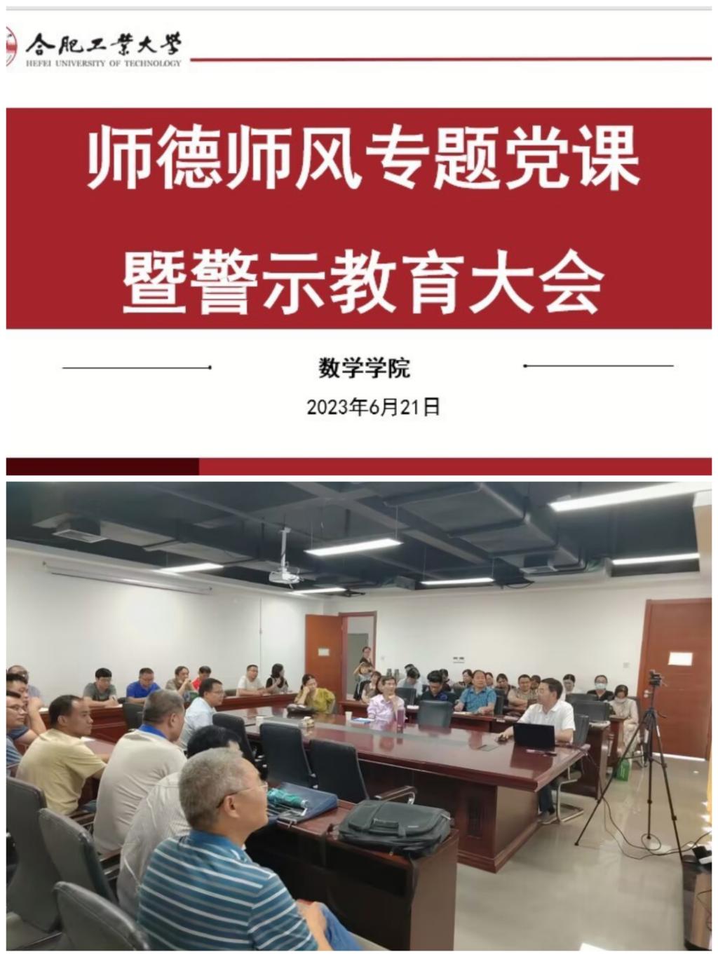 为了持续推进主题教育,扎实开展师德师风建设,6月21日下午,在翡翠科教楼1710会议室,B体育手机官方网站入口党委理论学习中心组组织召开师德师风专题党课暨警示教育大会。学院全体教师参加会议。